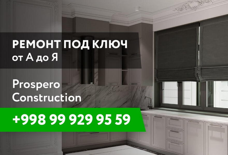 Ремонт функционально и эстетически улучшает пространство дома, предлагая лучшее качество жизни. Хотите сделать свою квартиру особенной? Только сейчас, заказав ремонт в PROSPERO CONSTRUCTION COMPANY, у вас есть уникальная возможность получить бонус в виде кухонного гарнитура. Чтобы принять участие в акции, позвоните PROSPERO CONSTRUCTION COMPANY по номеру +99899 929 95 59 и получите ответы на все ваши вопросы.