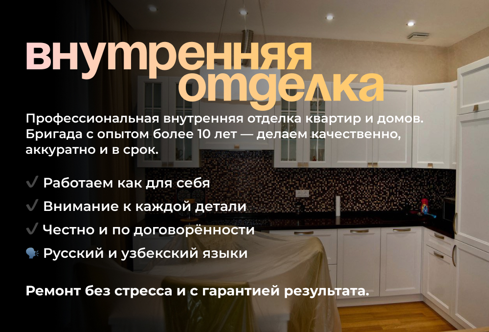 | Окна и откосы | от 30 000 сўм |