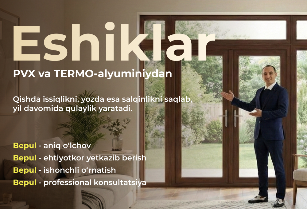 Uyga, ofisga, kvartiraga olib boradigan eshik insonning shaxsiy makonini himoya qiladi va himoya qiladi. Yangi eshikni o'rnatishga qaror qilib, uning sifati va funksionalligini diqqat bilan baholash kerak. O'zbekistondagi ta'mirlash ustalari portalida ichki va old eshiklar va eshik mahsulotlari bilan ishlash bilan shug'ullanadigan ustalarning katta tanlovi namoyish etildi www.ustabor.uz.